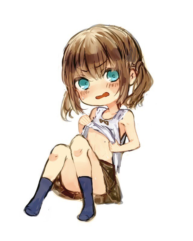 デフォルメ男の娘が何とも言えない顔しながらで胸の下のほくろを見せてくれる絵です(?)