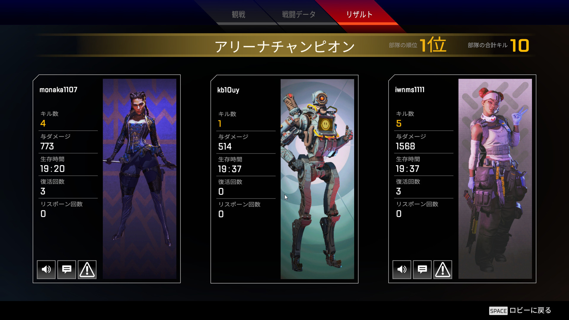 本日最初のトリオでチャンピオンなった